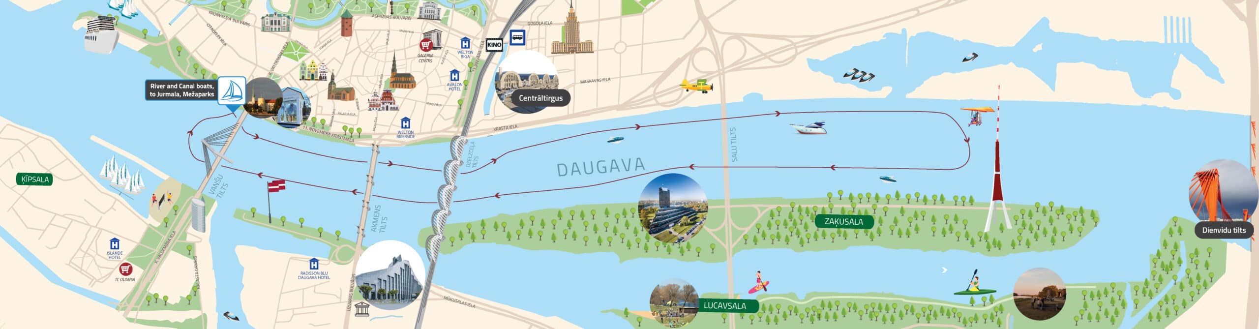 Kuģītis dodas aptuveni stundas garā panorāmas reisā pa Daugavu, kura laikā iespējams apskatīt Vecrīgas torņus, Prezidenta pili, Nacionālo bibliotēku, TV torni Zaķusalā, Lucavsalu, Andrejsalu un Rīgas pasažieru ostu.